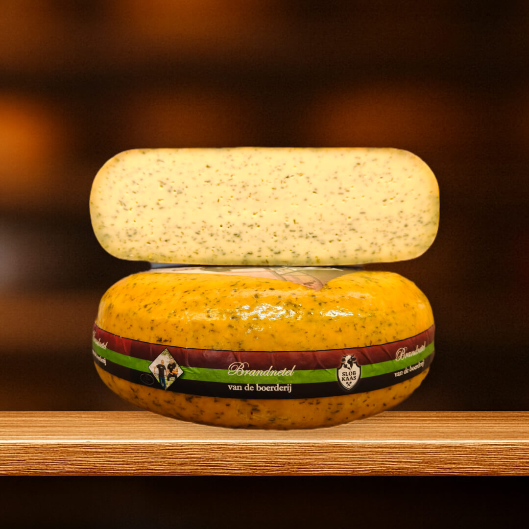 Jong belegen boerenkaas met brandnetel. Prikt niet! Gemaakt door famielie Slob uit Giessenburg.